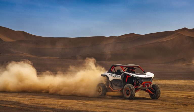 De Segway AT10 staat voor pure kracht en ultiem gemak: met 97 pk accelereer je in minder dan 9 seconden van 0 naar 100 km/u. Hij is uitgerust met een elektrische lier van ruim 2.000 kg, heeft 270 kg laadvermogen en 700 kg trekvermogen. Met diff-locks voor- en achter rij je comfortabel en veilig, en ben je klaar voor elk terrein – van diepe modder tot hoge bergen.