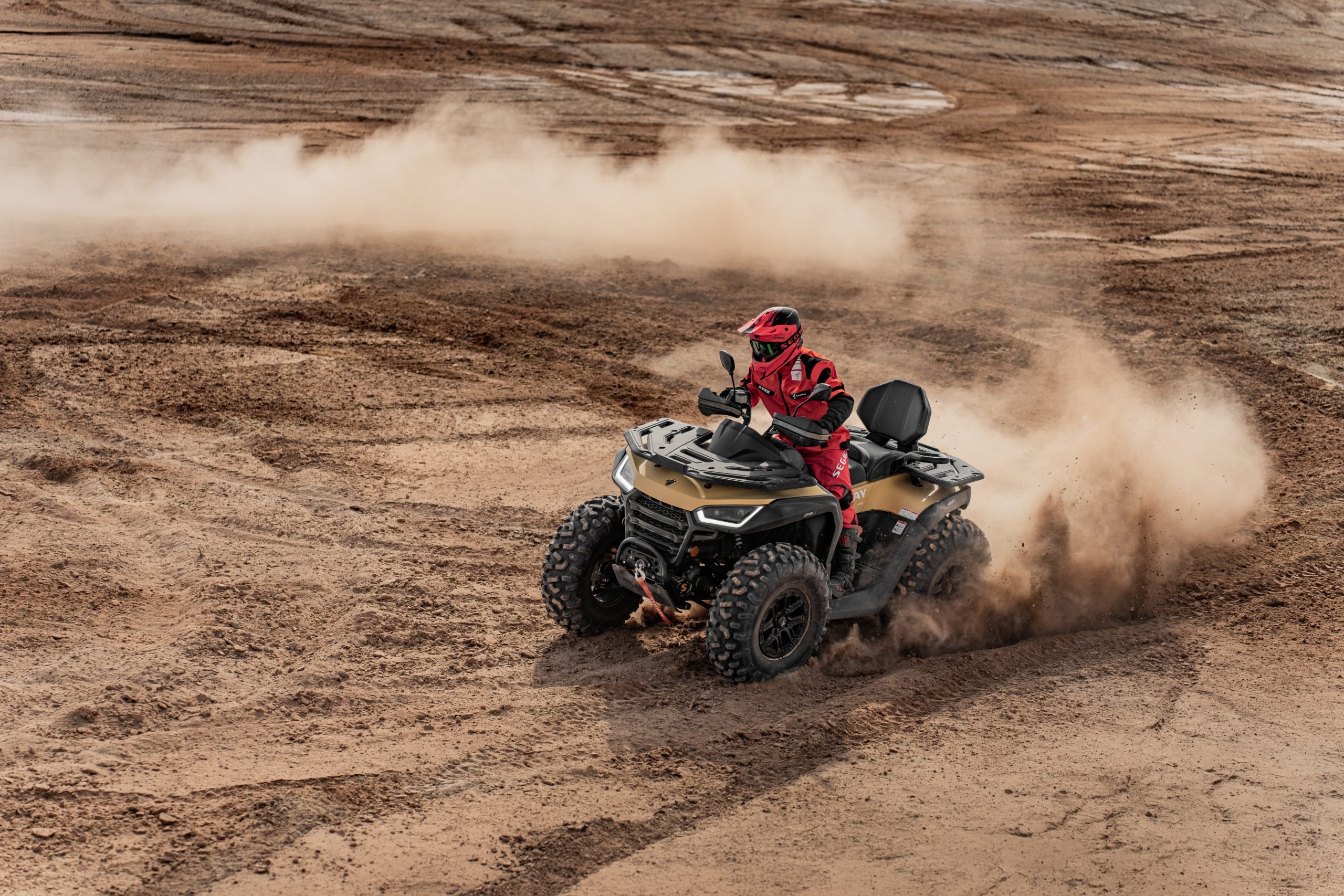 Met een laadvermogen van 270 kg, rekken van 40 en 80 kg, een ongeremd trekvermogen van 700 kg en een elektrische lier van 4.500 lbs (ruim 2.000 kg), ben je op alles voorbereid. Voeg daar de 14-inch aluminium beadlock-velgen en 32 cm bodemvrijheid aan toe en je weet: de AT10 is gebouwd om grenzen te verleggen – van modderige paden tot rotsachtige hellingen.