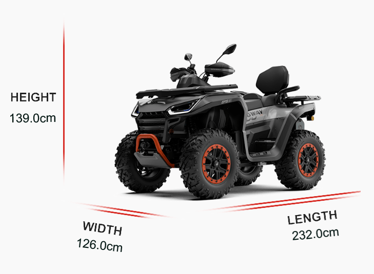 Het stevige chromium-molybdeen stalen frame, de led-verlichting en de gasgeveerde dubbele A-arm vering (18 cm voor / 21 cm achter) zorgen voor een veilige én comfortabele rijervaring. Via de Smart Moving App houd je alle prestaties eenvoudig in de gaten, terwijl de automatische diff-lock systemen het rijden nog intuïtiever maken.