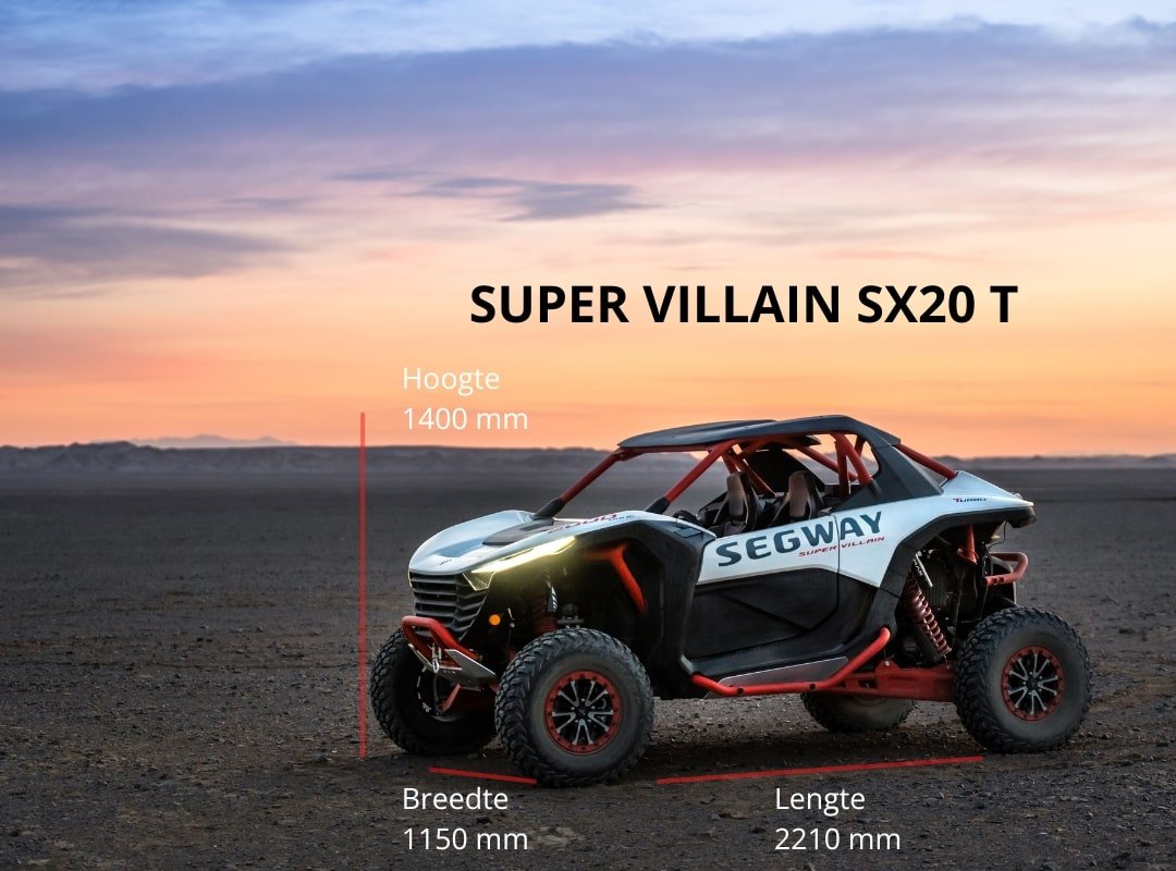 There’s a new Villain in town: de nieuwe Segway Supervaillain Sx20T levert adembenemende kracht. Onder de motorkap van de Super Villain SX20T ligt een brullende 2.0L motor die 235 pk en 288 pond-voet koppel levert. Dit krachtige hart zorgt ervoor dat je in slechts 5 seconden van 0 naar 60 mijl per uur schiet. Of je nu door modderige paden scheurt of over zandduinen raast, deze machine biedt ongekende snelheid en acceleratie.